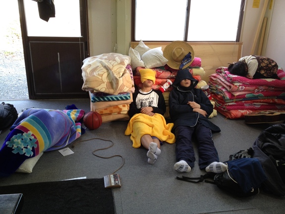 就寝準備を始めたら、みんな布団の上であそびはじめた。