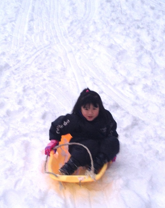 遊びに来た子どもとずっとソリで遊んでいました^^