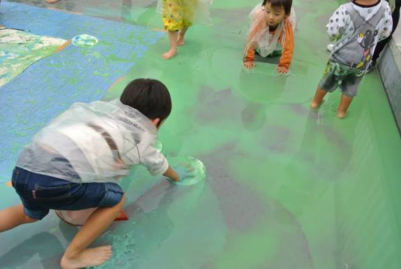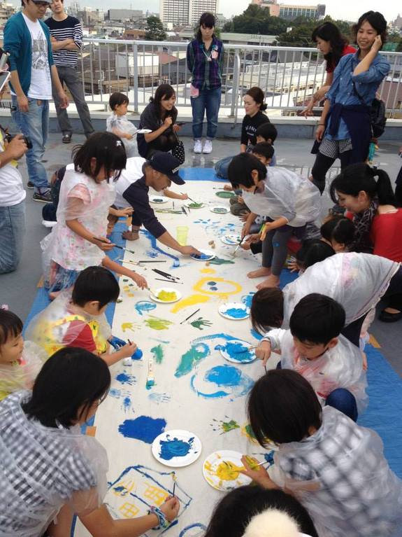 2日目はとってもいい天気で、みんなで屋上で絵の具タイム!!!
