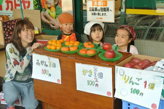 (商店街コラボのasobi基地にて。実際に子どもたちが果物、