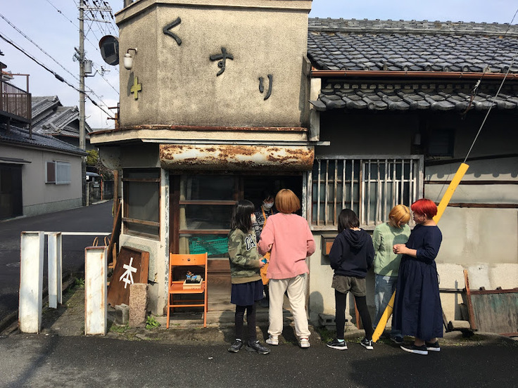 子ども達が過ごしているスクールから歩いて数分のところ、寛弘寺のバス停がある小さな交差点に、昔は薬屋さんを営まれていた10坪程の店舗物件があります。地域の人たちが日常的に行き交う場所です。