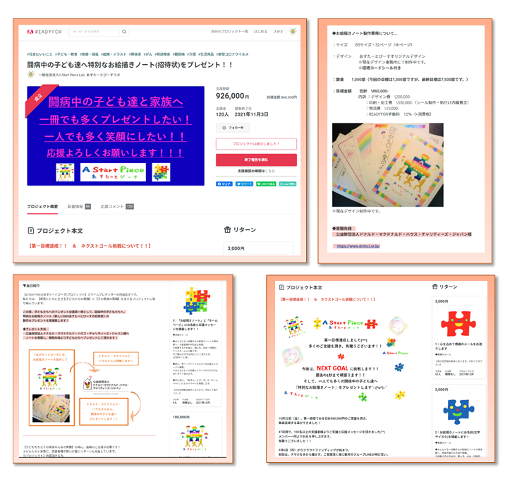 2021年9月~11月、READYFORクラウドファンディングにて支援を集め