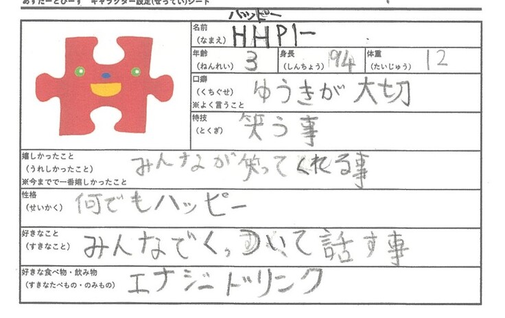 ≪子ども達が考えてくれたキャラクター設定用紙≫