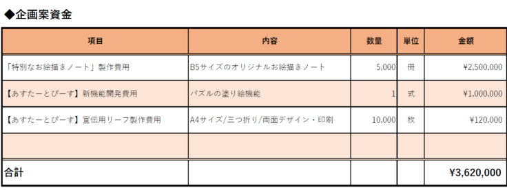 :項目「特別なお絵描きノート」製作費用に関して・・・