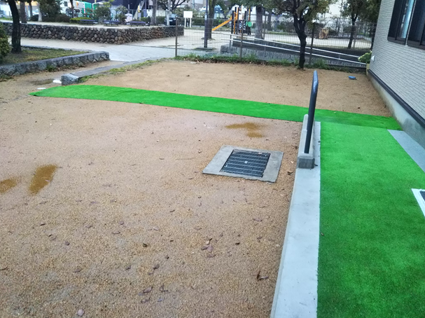 いまは、格子状にまばらですが夏ごろには一面に芝が広がる予定です。