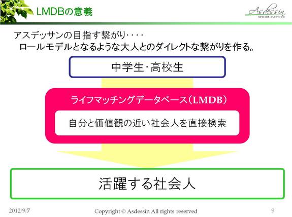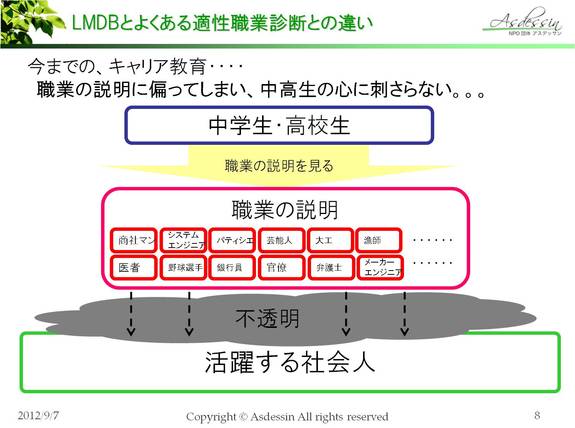「LMDBって、中高生が頑張ったことや価値観をインプットすることで、適性チャートの様なものが作成される、いわば職業適性診断みたいなものなのですか?」