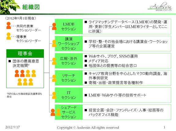 アスデッサンは、プロジェクトページにも書いた様な問題意識から、2011年4月にもう一人の共同代表の福岡と僕の2名で立ち上げたNPO団体です。