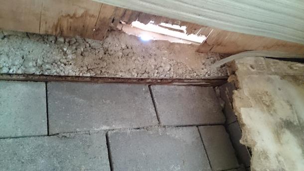 コンクリートブロック積みと木造が接する部分では、木の材が既に腐って欠け、空が見えるところもあります。コンクリートブロックも、ただ積んだだけの状態で、素人目にもとても危険です。