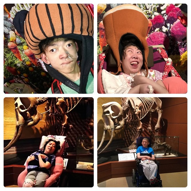 期間限定イベント「変形菌 不思議可愛い森の妖精」では菌の帽子を被り麻衣子菌にもなってみました。画像は、変形菌の模型の前で撮影しました。