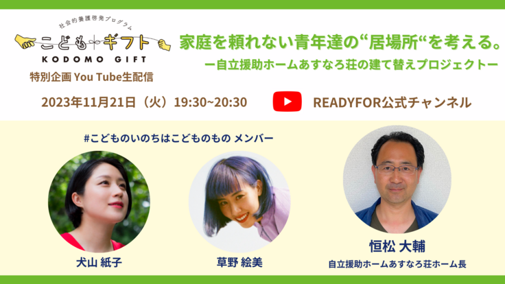 本日開催! オンラインライブ特別編「家庭を頼れない青年たちの"居場所”を考える」
