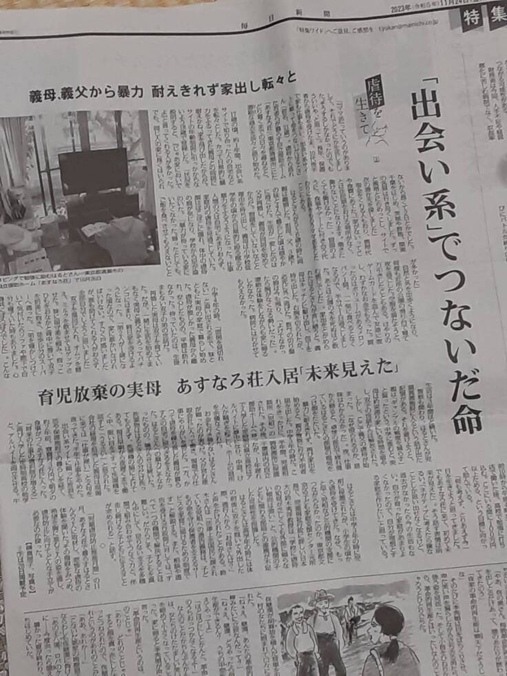 本日の毎日新聞夕刊にあすなろ荘の記事が掲載されました