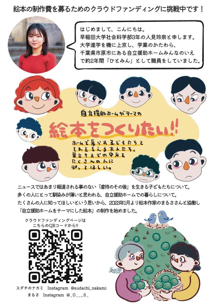 まだまだ世間的には認知されていない自立援助ホームを絵本を使って紹介してくれるということで、私たちも自立援助ホームを知ってもらいたく、クラウドファンディングを行ったということもあり、ぜひ応援したいと思っております。