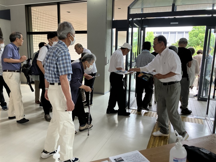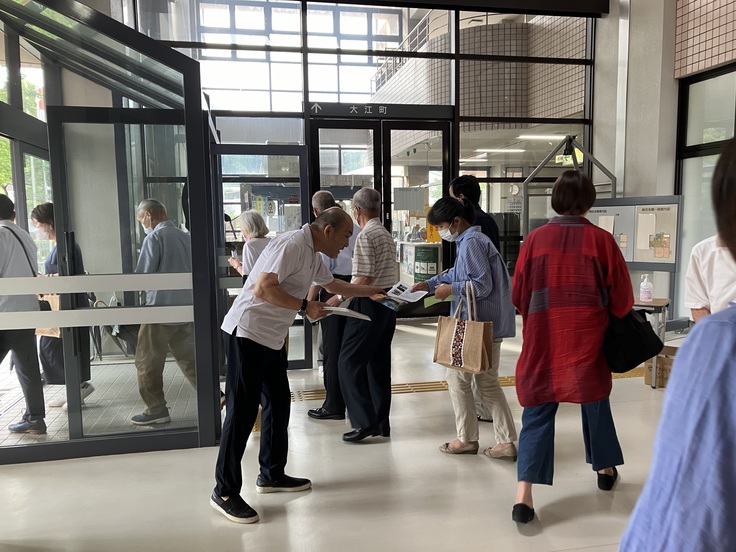 さて、6月29日委員長を始め役員で、福知山市宗教者懇話会講演会終了後主催者のお許しを得て愛宕神社再建に向けた支援を参加された350人を超える方々に訴え、クラウドファンディングのチラシを配らせていただきました。皆さん帰りを急がれる中、快くチラシを受け取っていただき、その場で寄付をしてくださる方もありました。このような働きかけをこれからどんどん増やして一層の支援の積み上げを増やしていきたいと思っています。ご支援者の皆様のご協力、ご支援、更なるプロジェクトの拡散をお願いいたします。
