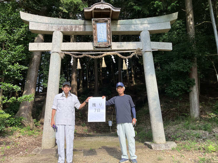 プロジェクト終了まであと7日となりました。6月10日より取り組んでまいりました当プロジェクトももうあと少しとなりました。皆様には、これまで沢山のご支援や応援のお言葉などいただき、誠にありがとうございます。おかげをもちまして第一目標を達成することは出来ましたが、本来の目標である社殿の建設にはまだまだ程遠い状況です。益々のご支援、応援、プロジェクトの拡散お願い申し上げます。