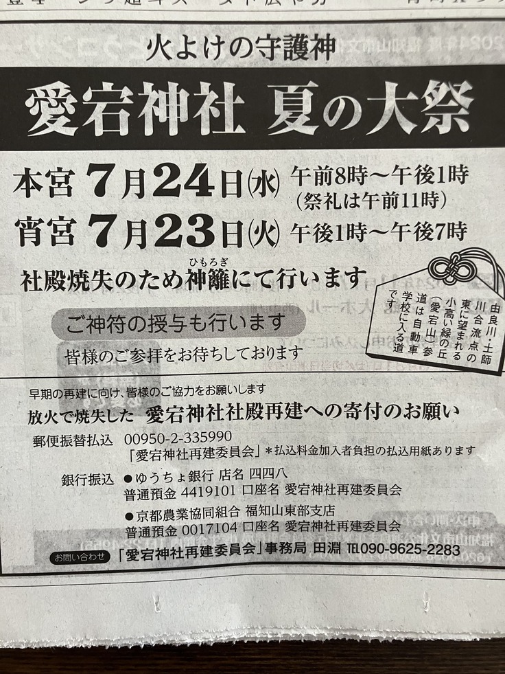 19日に両丹日日新聞に夏の大祭の記事が掲載されました。