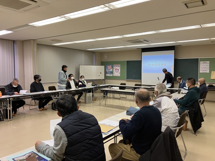 その後、匠工務店と協力して建築に携わっていただく一級建築士の土本さんから建築上の課題について説明がありました。土本さんからは、現状愛宕神社に続く道路の幅が狭く市道に認定されていない為直ぐには神社が建てられないという事が話されました。また、建設予定地が以前から神社が建てられていた場所である為文化財保護法を遵守していく必要性などが話されました。