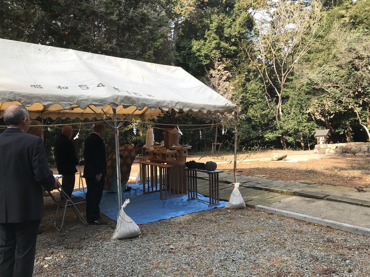 いつもご覧いただきありがとうございます。1月23日、24日春の大祭が両日とも大寒の頃とは思えないような好天の中、行われました。24日の本祭では、宮司のもと神事が執り行われ、地域の安心・安全、火防の祈願をしていただき、神社再建への祈願もしていただきました。最後に今年度の宮総代世話役で再建委員会の副委員長でもある出口氏から「再建に向けた気持ちを強く持ち、再建に向けてスピードを加速していきたい。」と宮総代、再建委員会を代表しての決意が述べられました。朝日新聞社や両丹日日新聞社からも取材にみえ、近く報道していただけるのではないかと思っています。これからも再建に向けた取り組みをお伝えしていきます。最後までお読みいただきありがとうございます。