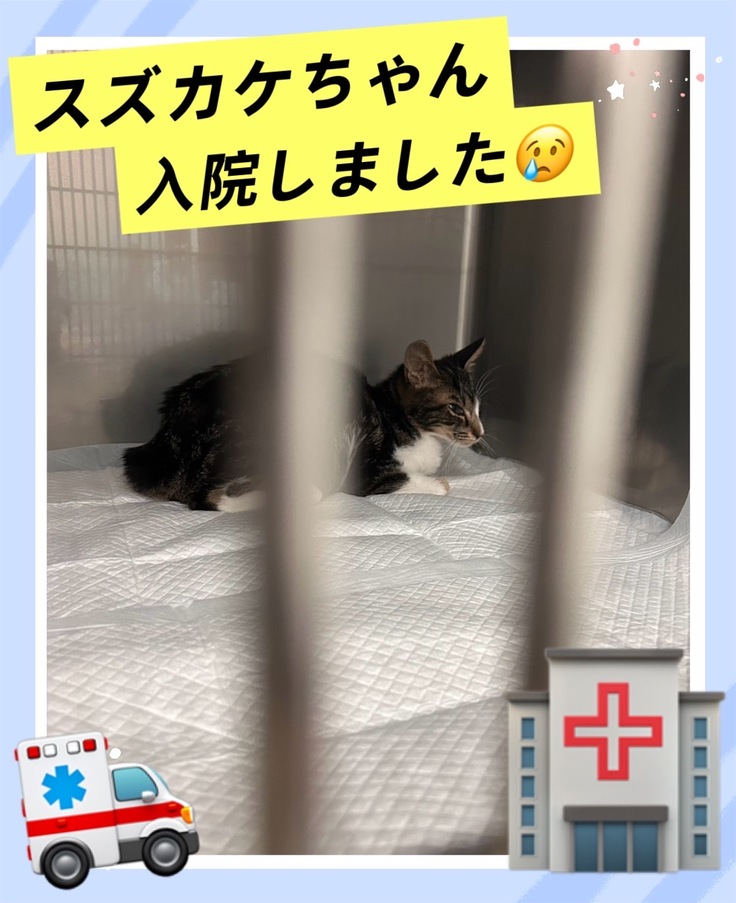 FIP闘病中のスズカケも緊急入院です‼️