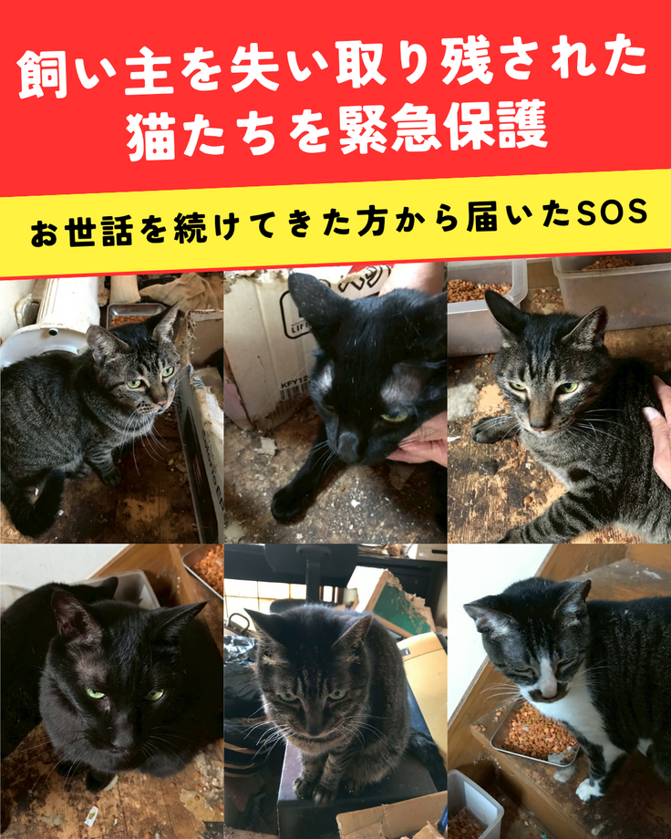 都内某所、飼主さんの急逝により2年もの間、お世話に通っていた方からの悲痛なSOSにより、6頭の引取りレスキューを行いました。