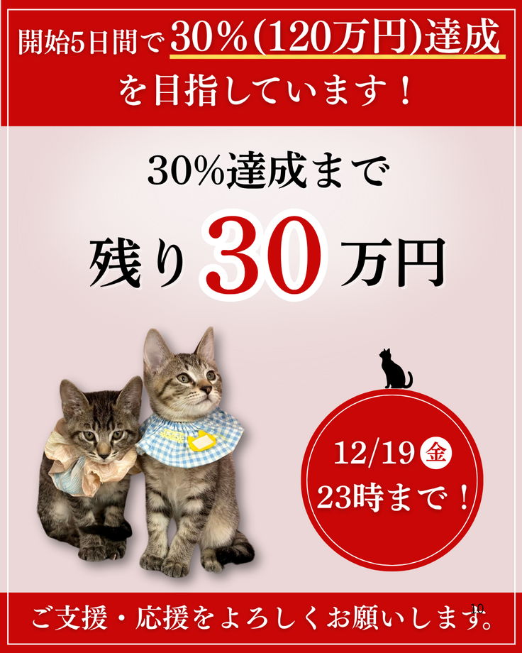 目標金額の30%=120万円を目指しています!!!