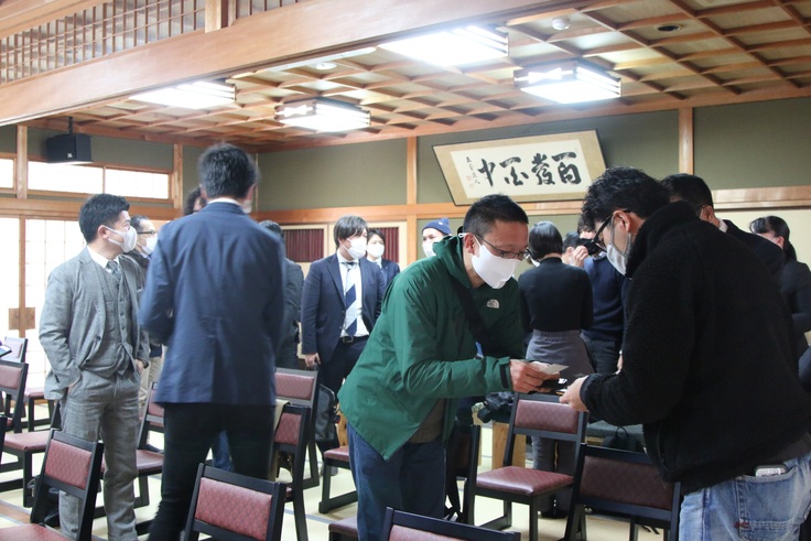 そして内覧会では、会場のあちこちで名刺交換や交流が行われていました。