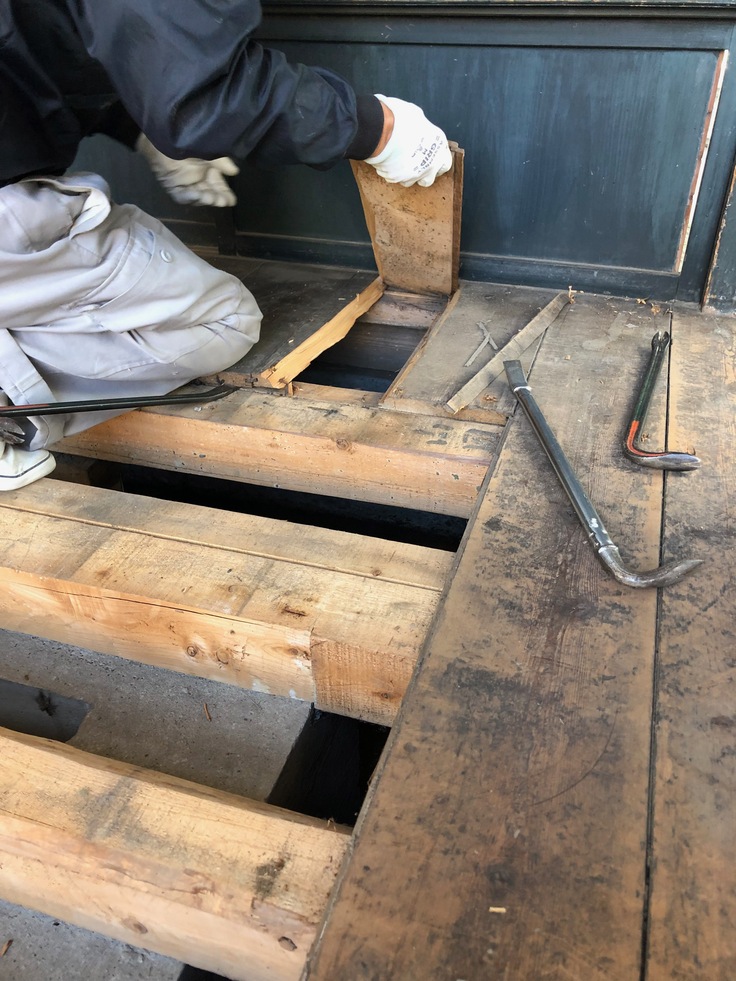 しかし、その熟練の大工さんにかかっても、床剥がしから、簡単な作業ではありませんでした。