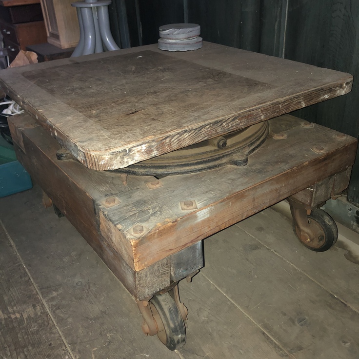 彫刻台:このような物が幾つもあります。ちょこんと載っているのは、父の遺作となった、作りかけの「供物」という作品。