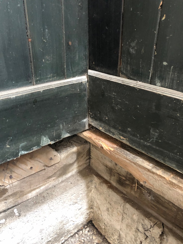 大変な作業を経て、でも丁寧に床を剥がしてもらうと、四隅の壁に向けて4センチくらい下がって穴が空いてしまっていて、それを板で塞いでいました。たぶん父が生前、気がついていたのに、大掛かりなことができず、応急処置をしたのだと思いました。