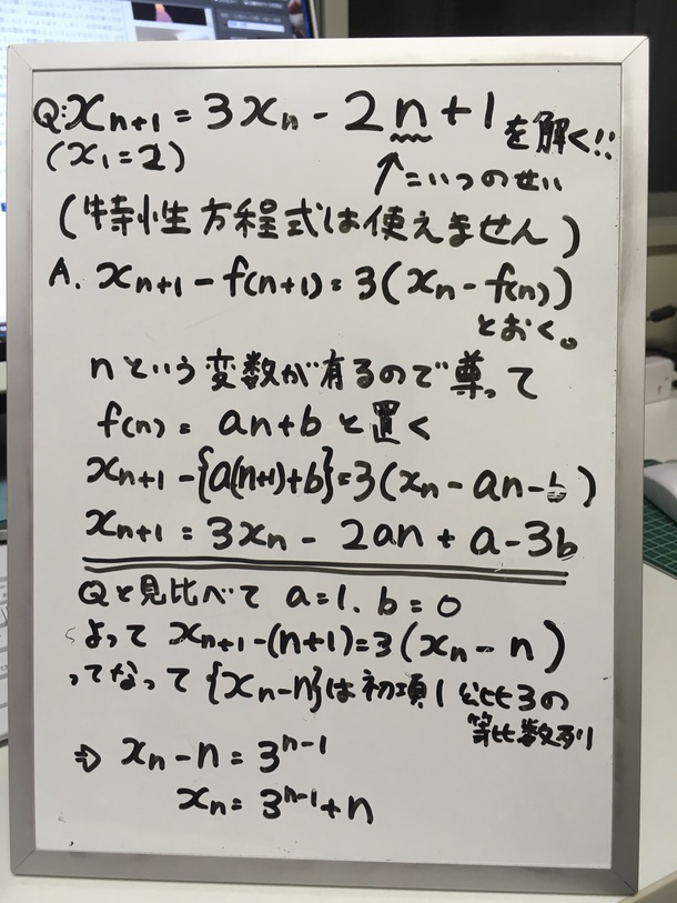 こんばんわ。宮崎はお昼を回ったころから、大雨に見舞われています。遠方の南海上に台風がいるとはいえ、すでにその影響が出ているのでしょうか。強い風にあおられて、斜めに降る雨で、道路に水があふれています。そんな中、今日もが学校を終えた子供たちが濡れながら集まってきています。それぞれが自習に取り組む中で、数学で行き詰まった子が、助けを求めてきました。塾ではないので、すぐに教えてあげることは、高校数学ともなるとなかなか難しい現状です。そこで早速パソコンで解答を求めて調べました。パソコンで調べたこと等を参考に、何とか解決を図ることができました。