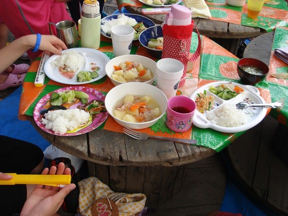 (自然の中でのびのびと遊んだあとにみんなで食べる食事は格別です!)