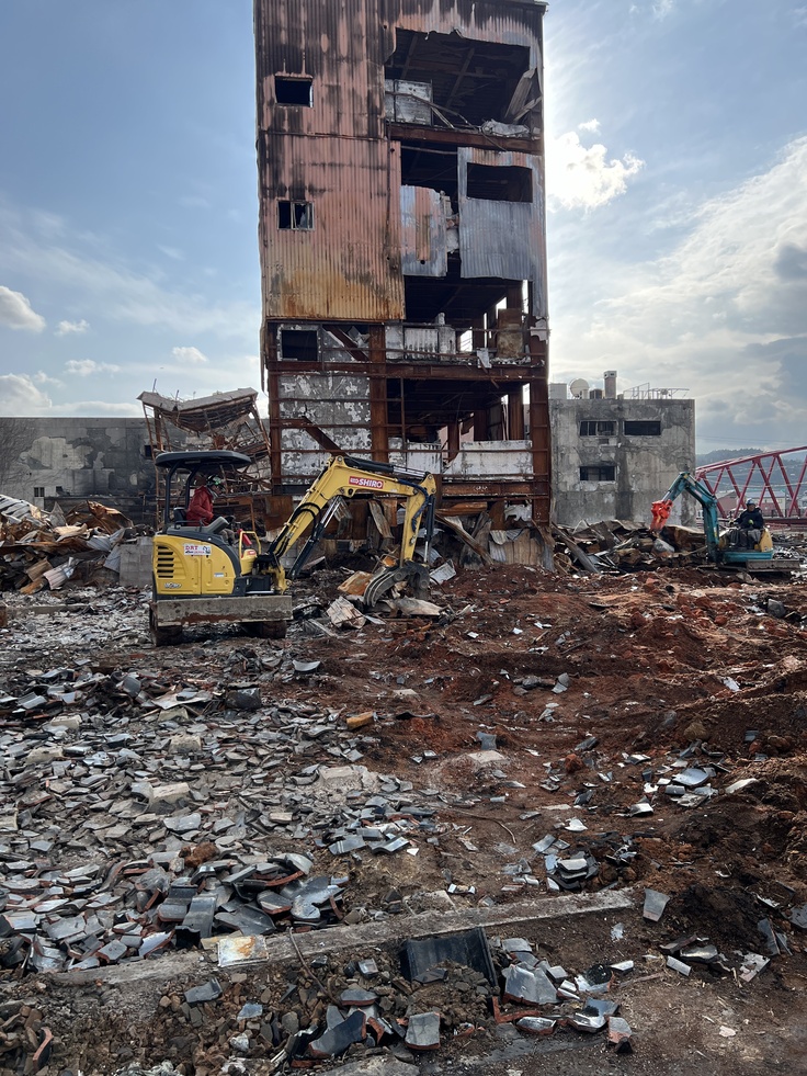 うんともすんとも動かなかった大きな壁面のトタンの瓦礫でしたが、重機であっという間に撤去していただけました。