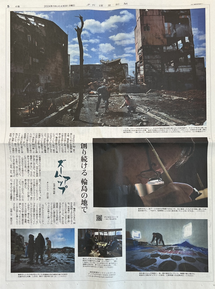 "創り続ける 輪島の地で" ズームアップ > 上記新聞は4月8日の読売新聞の夕刊。発災から現在に至るまだの冨田大介氏による取材記事です。