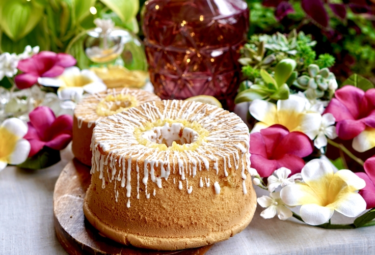 これは、アイシングを利用したシフォンケーキの例です。この他、生クリームでデコレーションしたり、シフォンケーキのサンドイッチを作ったり、おひとり様専用の小さなシフォンケーキなど、デコレーションシフォンケーキの様々なアイデアがあります。