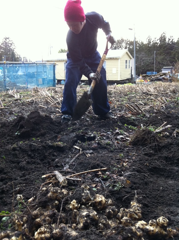 昨年初め、この菊芋の栽培について南三陸町を支援して下さる支援団体の方から提案を持ちかけられた時は、はっきりいって「半信半疑」でした。しかし支援団体の熱意に同感し震災後休耕地となっていた(以前は農業体験等で芋ほり等のスペースとして使っていた土地)場所を提供し栽培を行うこととしました。