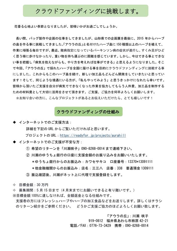 4月11日にリーフレットを発送しました。ネットができない友人から連絡が入り、代わりに入金をしました。本当にありがとうございます。