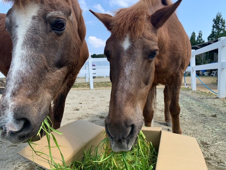 その為、アヴニールファームでは、親子2頭が常に近くにいるような環境を心がけ、飼養しております。体験乗馬などで、スモモちゃんがお仕事の場合は、仕事の無いデールも一緒についていきます。そうする事で、2頭は安心し仕事に集中できるからです。