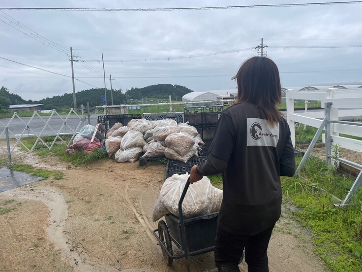 大阪府といえども、周囲は山や畑が沢山あり、近隣農家さんに可能な限りもらっていただき、堆肥として活用していただいております。