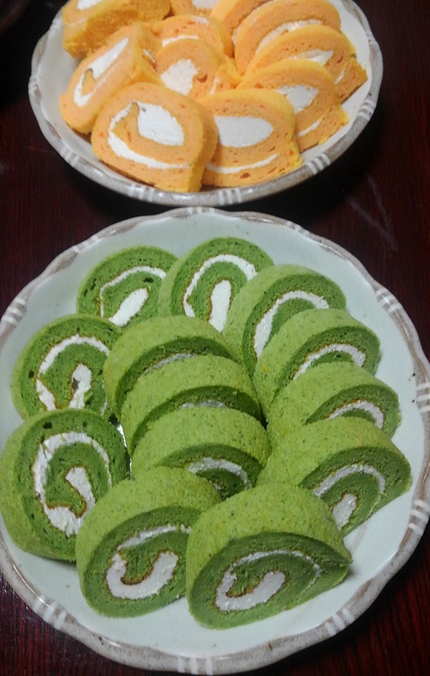 抹茶ケーキとパンプキンケーキが出てきたと