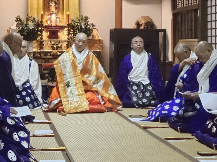 千光寺の本堂は1622年に徳島藩祖 蜂須賀家政公により再建されて400周年を迎えます。これを記念して、大導師に高野山より長谷部真道管長猊下にお迎えし、先山千光寺本堂再建400周年記念法会を厳修致しました。当日、霙の降る中50名を超える方にご参拝いただきました。また同日に行われました祝賀会も盛会に終わり、寺内役員一同令和6年度以降の本堂修復に向けて気持ちを新たに邁進して参ります。