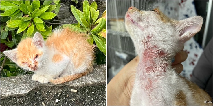 ノミとりのためお風呂に入り出来る限りの処置をして、メンバー宅で保護されています。