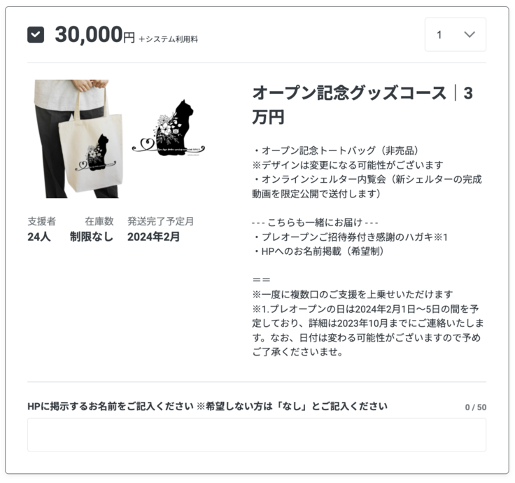 ※一度に複数口のご支援を上乗せいただけます