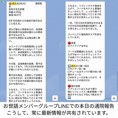 ご飯を食べられるようになって少し元気になって帰ってきた虎丸ですが、投薬、点滴、傷の処置とまだまだ予断を許さない状態。脱毛と皮膚が薄くなり爛れる症状にはっきりとした診断はつけられず、全身に広がった場合は最悪安楽死と告げられる。腎臓も悪い。