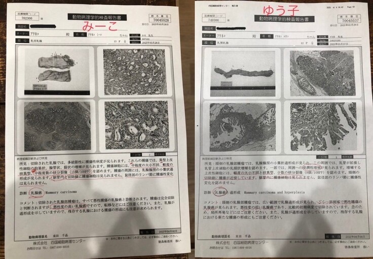 みーこさんの腫瘍発覚からほどなくして、ゆうこさんにも乳腺腫瘍ができていることを発見。