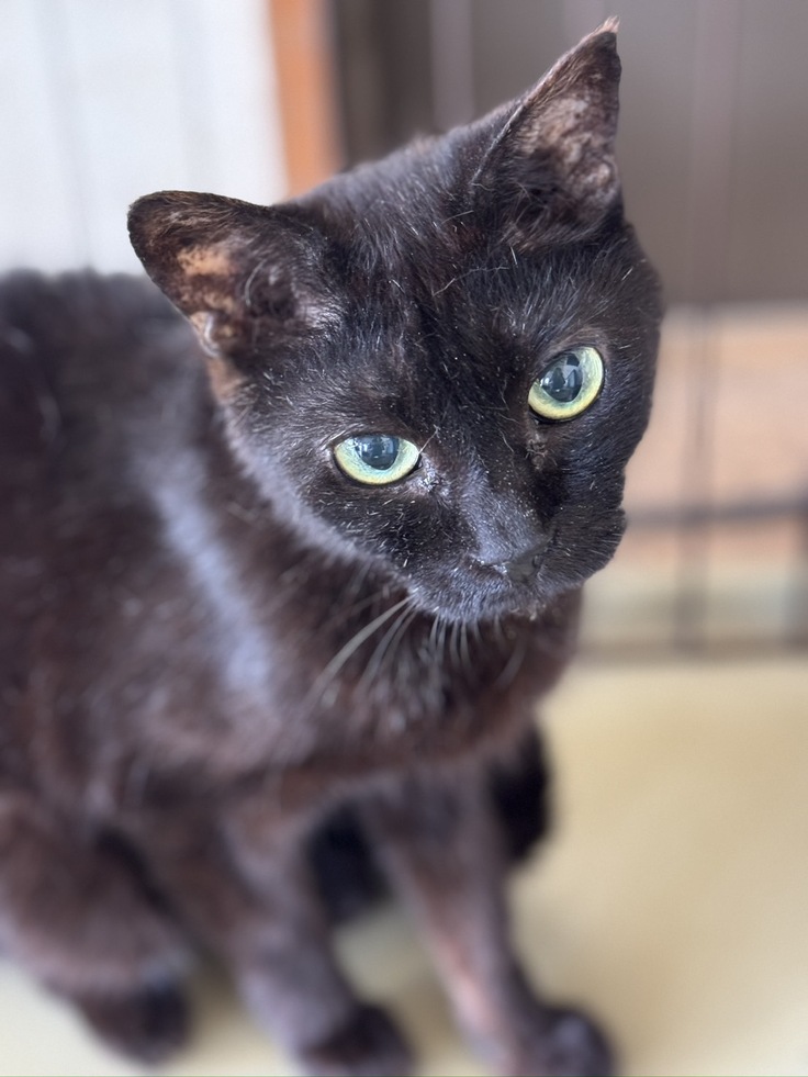 シニア猫で、歯も数本しか残っておらず、どれほどの期間このような状態で閉じ込められていたのかと考えると、胸が締めつけられる思いです。