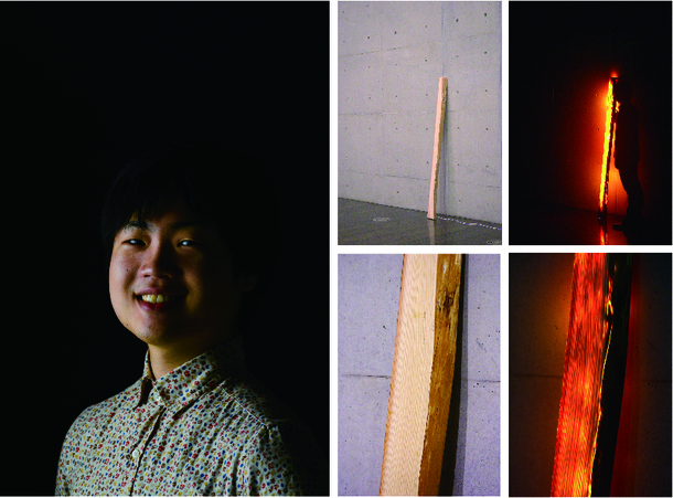今泉涼 / モノをかたちづくる輪郭とは何かを考える。3年時のゼミナール研究で無垢の木を撫でると光る照明を制作。その技術を生かして今までになかった自然とも人工とも言えない新しい照明の輪郭をデザインする。