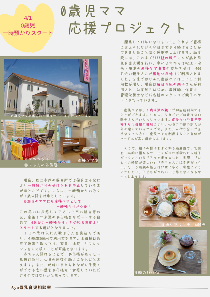 助産院を利用するママへ応援メッセージを届けます