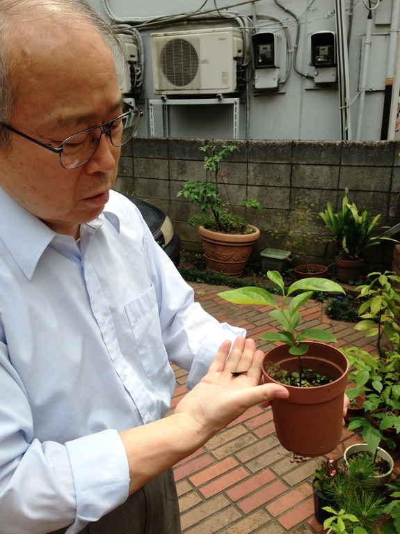 帰り際、「もうひとつおまけ」と鈴木先生が手に取った鉢がありました。鈴木先生が公園で拾ってきたどんぐりやくるみ、銀杏、柿の種を鉢に転がしておいて、芽が出たという植木鉢です。写真に写っている鈴木先生が持っている鉢は先日、私たちの法人が運営する二葉南元保育園の「花の日礼拝」の際に持って行って、子どもたちに見せながら話をした時の鉢なのだそうです。「なかなか芽が出ないものもあるけれど、水をやりながらじっくり待つと芽が出てくるのもあって、それが楽しみなんですよ」という鈴木先生の言葉に、コンサートへ向けてじっくり準備をしている、今の私たちが重なりました。