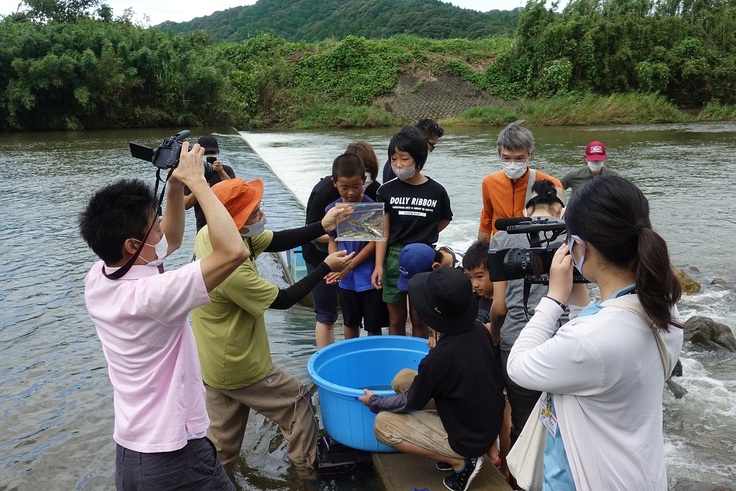 先月に続いて、八日市の魚道で観察会(2回目)。