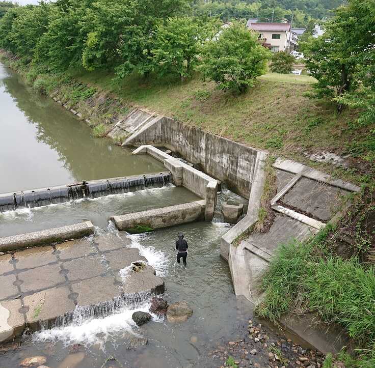 ・一方で、その上流の野田では確認できず、尋牛橋上流の床止め段差が障害となっている。