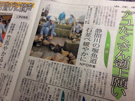 山陰中央新報さまが先日の魚道工事を紹介してくれました!